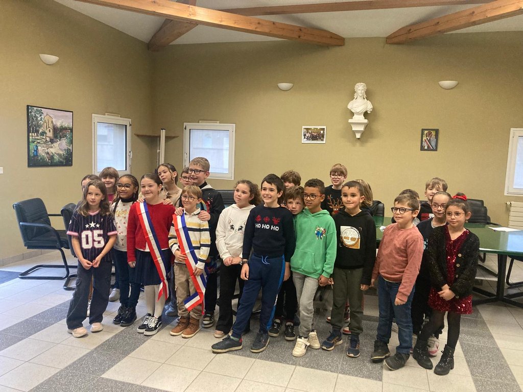 Le jeudi 11 décembre 2025, les 24 élèves de CE1-CE2 sont venus à la mairie pour élire leurs délégués de classe. Encadrés par leur professeure des écoles, Mme Audrey GILLET, les 9 candidats avaient réalisé leur campagne électorale en présentant leurs programmes respectifs à l’ensemble de leurs camarades en classe.