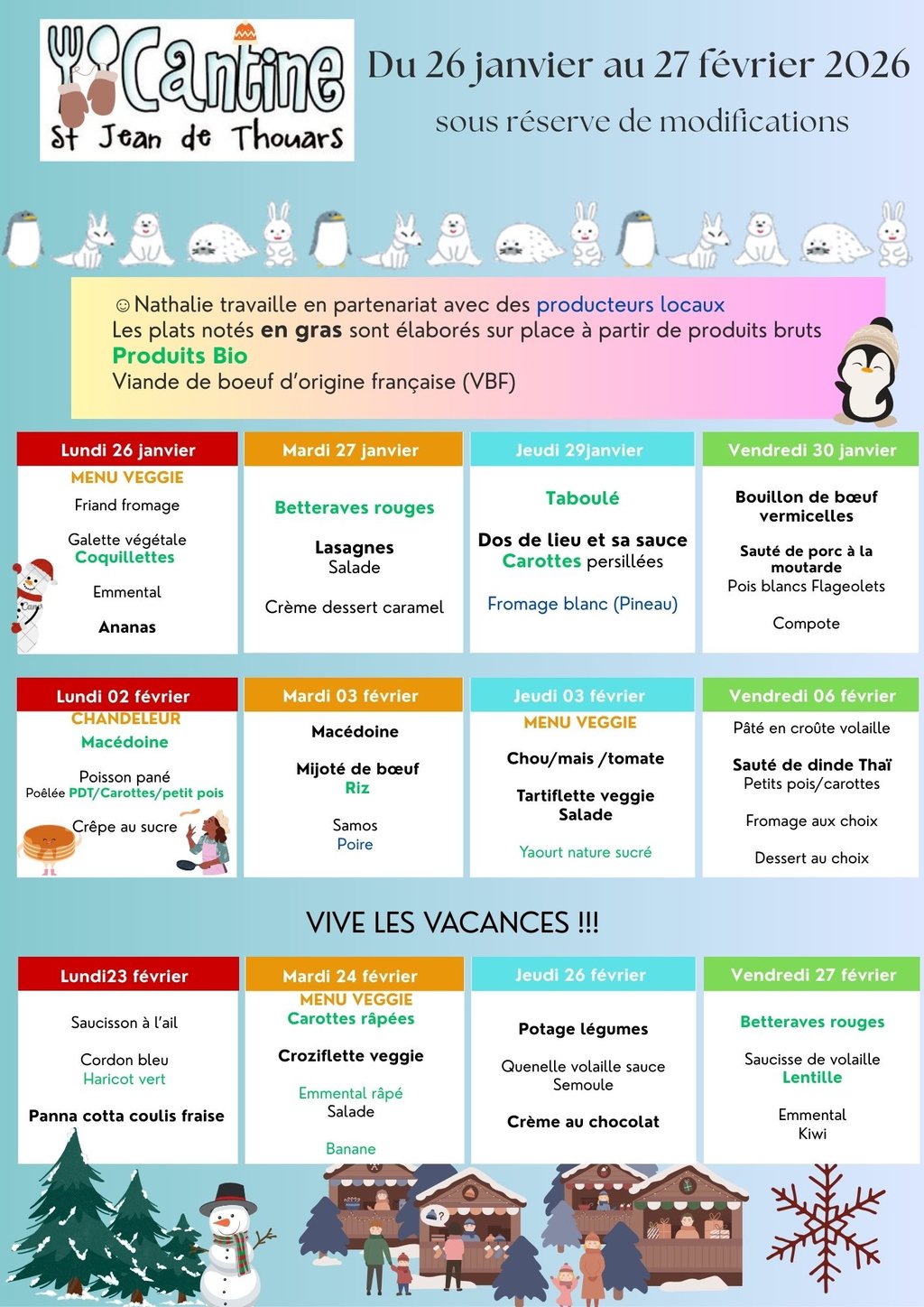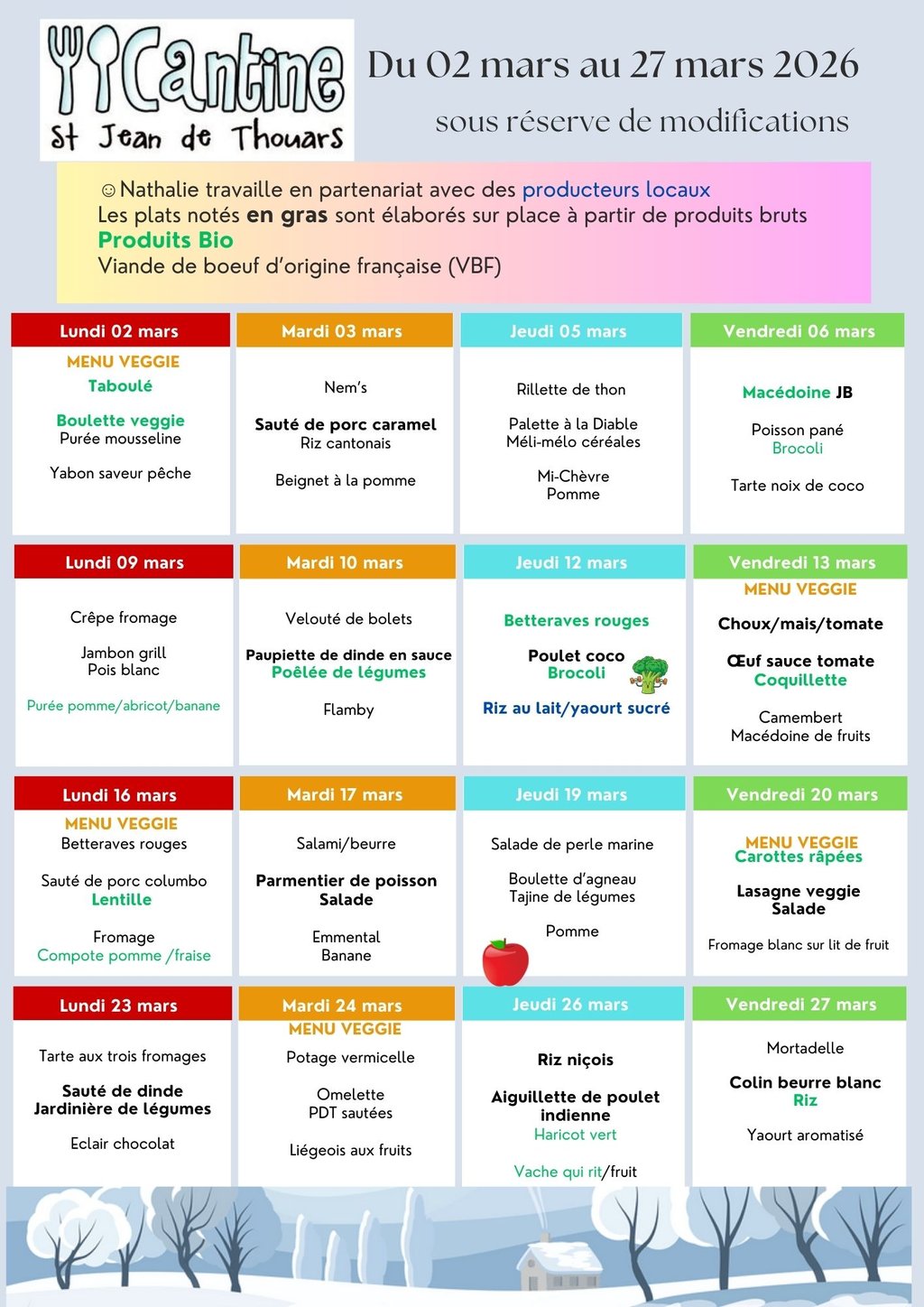 MENUS DE LA CANTINE DU 26 JANVIER AU 27 MARS 2026