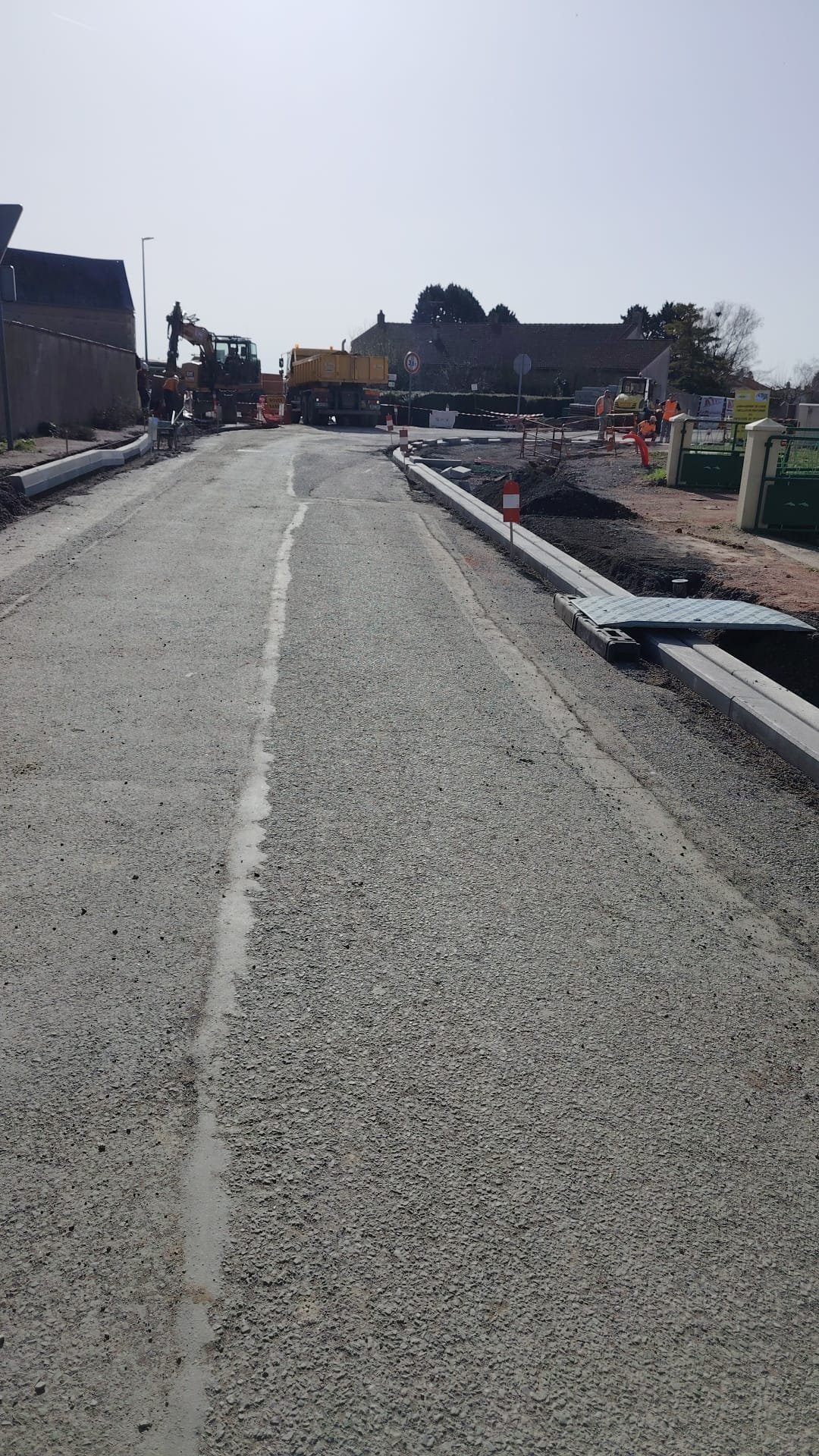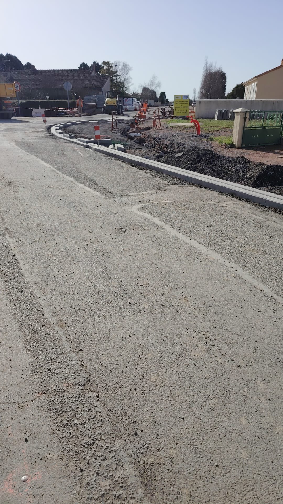 La première phase des travaux de la Route de Saint Varent avancent bien, les bordures de trottoirs sont en cours de pose.