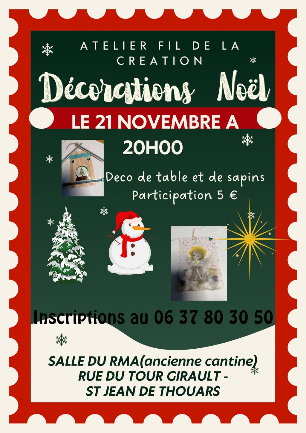 VENEZ REALISER VOS DECORATIONS DE NOEL LORS DE L'ATELIER PROPOSE LE VENDREDI 21 NOVEMBRE A 20H00