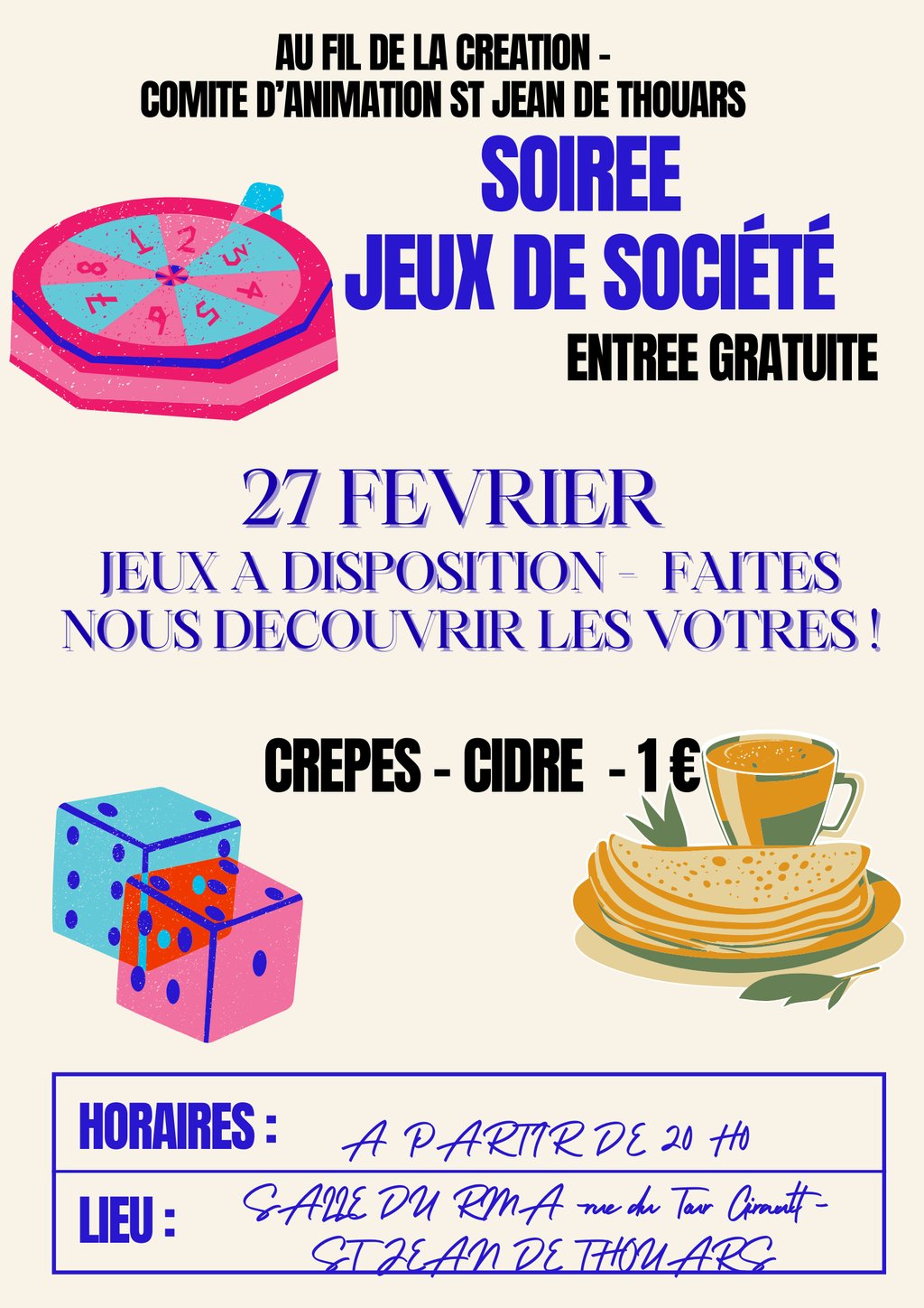 Réservez votre soirée du 27 février pour venir jouer avec les jeux proposés - n'hésitez pas à apporter les vôtres !