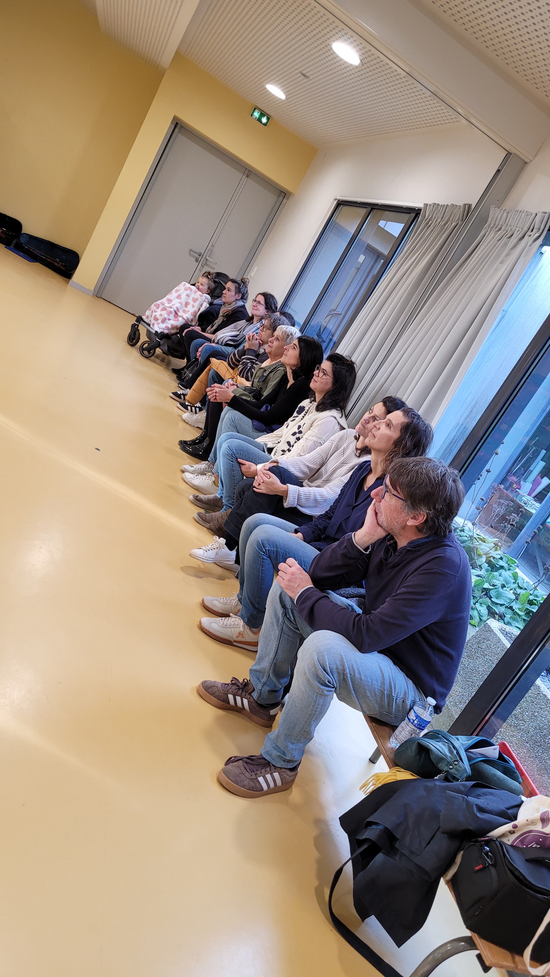 Ce vendredi, nous avons eu la joie d’accueillir à nouveau Lise BOREL dans notre atelier de fin de semaine. En résidence pour la semaine, Lise a en effet terminé sa tournée du DEMOS Thouarsais en venant partager cette heure et demie avec les musiciens Saint-Jeantais. À cette occasion, notre atelier a été en mode " Portes Ouvertes" : parents, élues et professeurs de l'école Bonneval ont pris place dans la salle de motricité de l'école pour cet instant privilégié.
