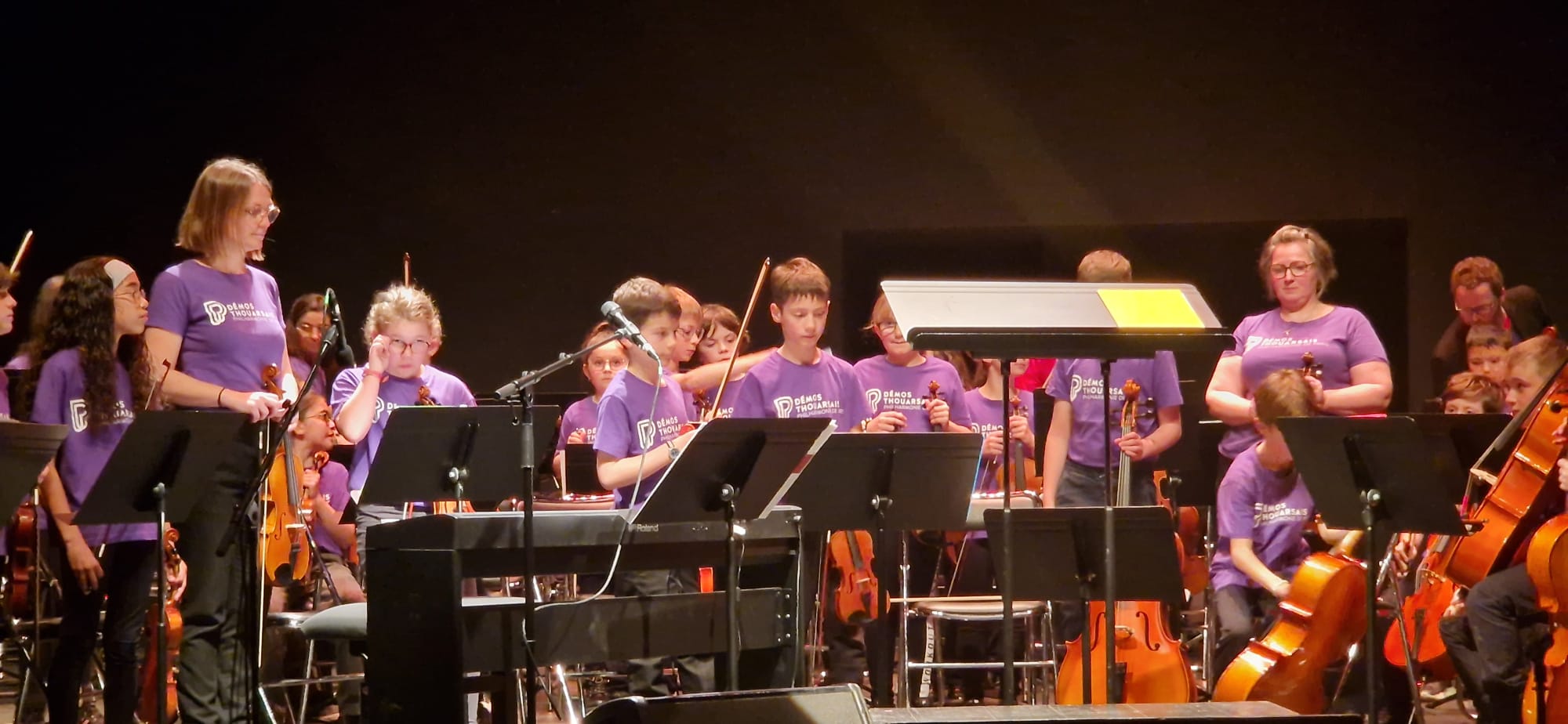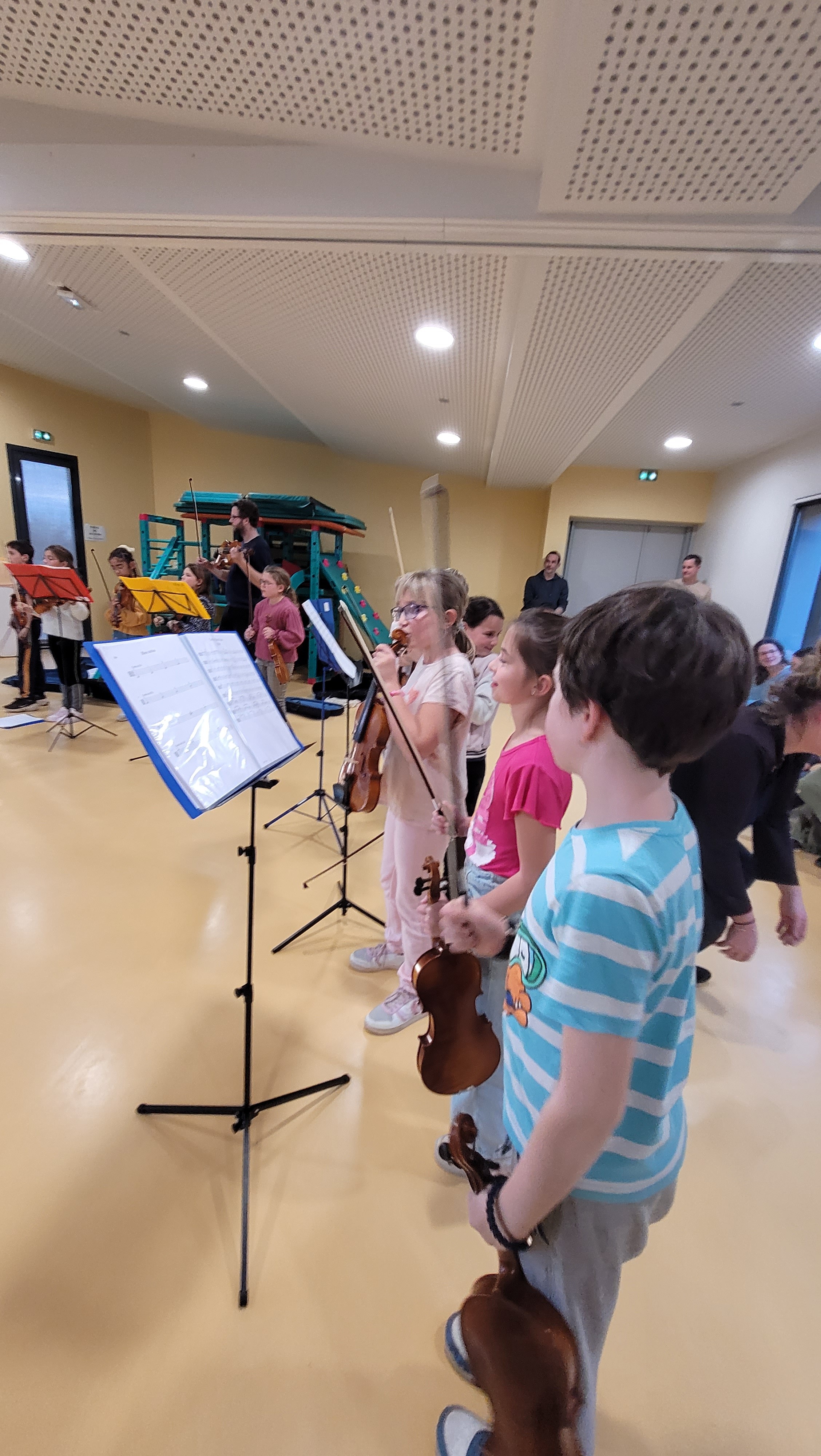 Enfin, pour terminer la semaine, les enfants se sont donnés RDV au conservatoire pour un Tutti (rassemblement de tous les enfants participants au projet DEMOS Thouarsais). Sous la baguette de Victor JACOB, de Lise BOREL et de tous les professeurs du conservatoire, tous les musiciens ont pu travailler les œuvres, chants et chorégraphies qui seront présentés au public lors du grand concert du 25 mai 2025. En fin de séance, les parents ont été mis à contribution et ils ont pu chanter avec les enfants. Un très beau moment de partage. BRAVO À TOUS !!!