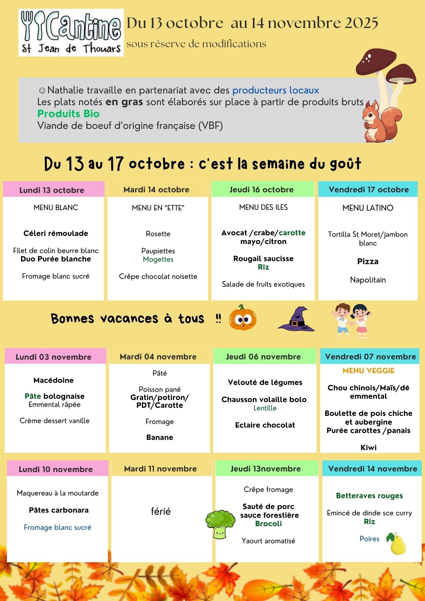 Menus du 22 septembre au 05 décembre 2025 ( cliquez sur l'image pour aggrandir)