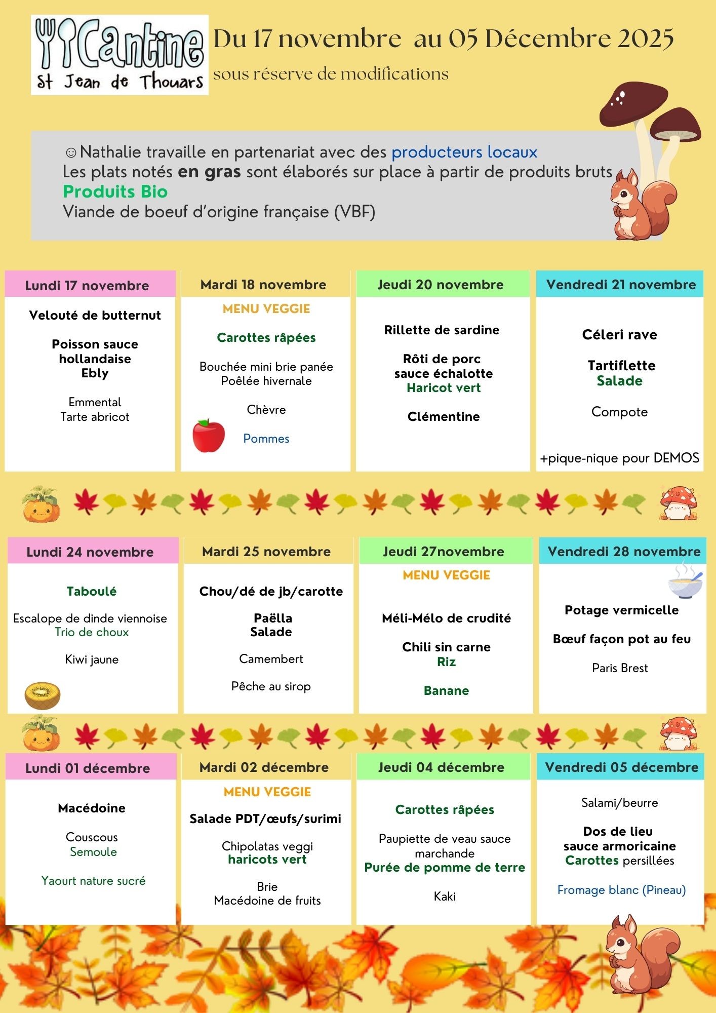 Menus du 17 novembre au 23 janvier 2026 ( cliquez sur l'image pour aggrandir)